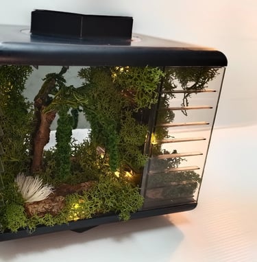 Sin riego ni poda. El musgo preservado no requiere riego, luz ni cuidados especiales, lo que lo convierte en una opción práctica y duradera para la decoración de cualquier espacio.