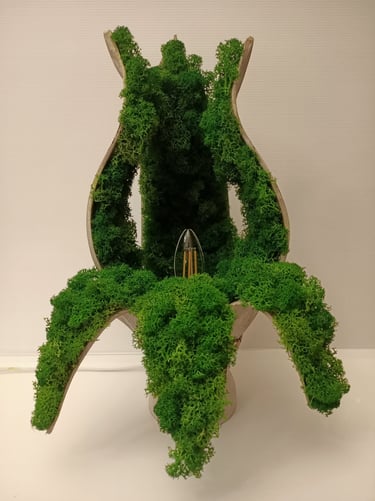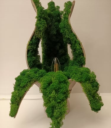 La fusión del musgo con el diseño robusto de la madera de palet y el metal, o la elegancia de las hojas de coco. Las lámparas pueden ser adaptadas para ser enchufadas a la red eléctrica o funcionar con baterías. Esta versatilidad añade practicidad a la belleza estética, permitiendo a estas lámparas transformar cualquier rincón en un lugar acogedor y estéticamente impactante.