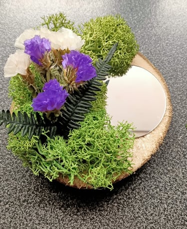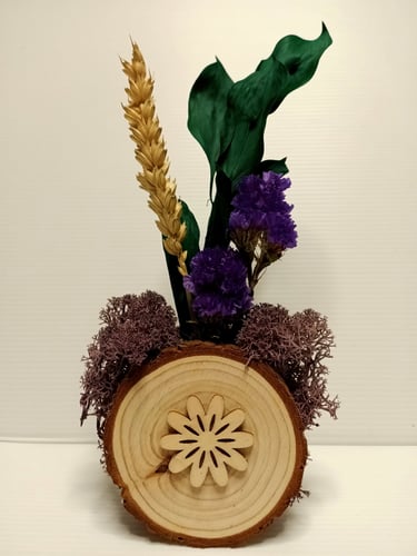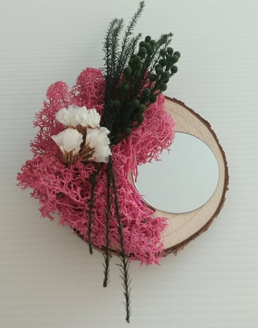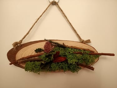 Variedad y selección de materiales como palets reciclados, corazones de madera, troncos, figuras de metal creando una armonía única entre lo natural y lo cotidiano, que transformarán tu espacio en un rincón acogedor y lleno de vida.